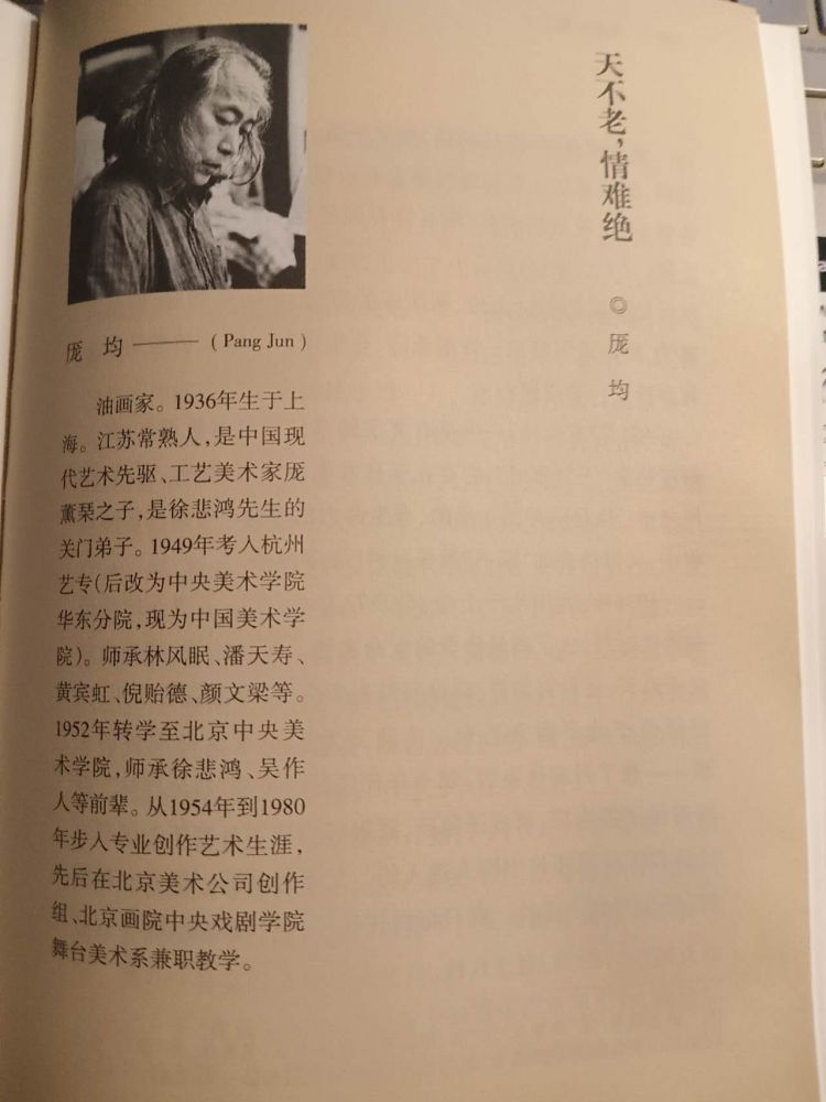 另一篇是庞均写的《天不老,情难绝》,是回忆他父亲对他的家传身教,也是很令人感怀。我最印象深是他说他父亲的话——艺术有“没有修养的艺术”和”有修养的艺术“,觉得很深刻。