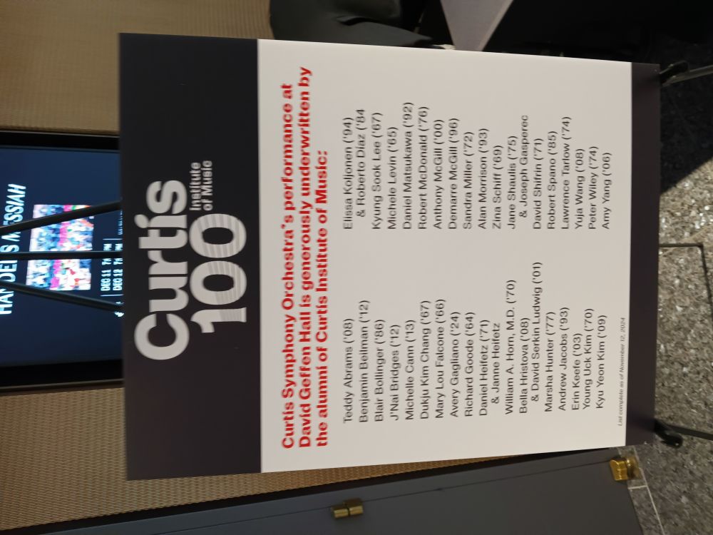 再转头说这curtis交响乐团的人员概况。它的乐手全部来自Curtis音乐学校,而这学校是培养过包括指挥家伯恩斯坦,中国钢琴家朗朗的知名音乐学校-位于费城。我前阵子刚看一部纪录片-关于2001年费城交响乐团携朗朗在北京人民大会堂的经典演出背景回顾。这回巧了,Curtis音乐学校的交响音乐团来纽约演出了。意外收获!乐手中很多亚裔,大约能占到3/5以上。让人恍惚中国某交响乐团来访。