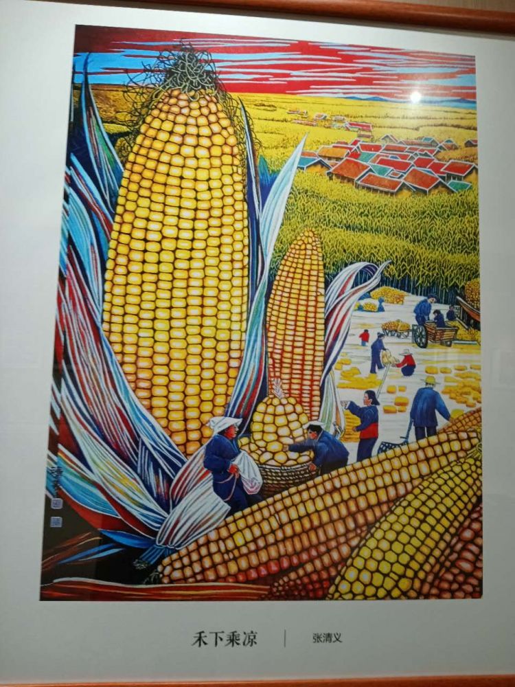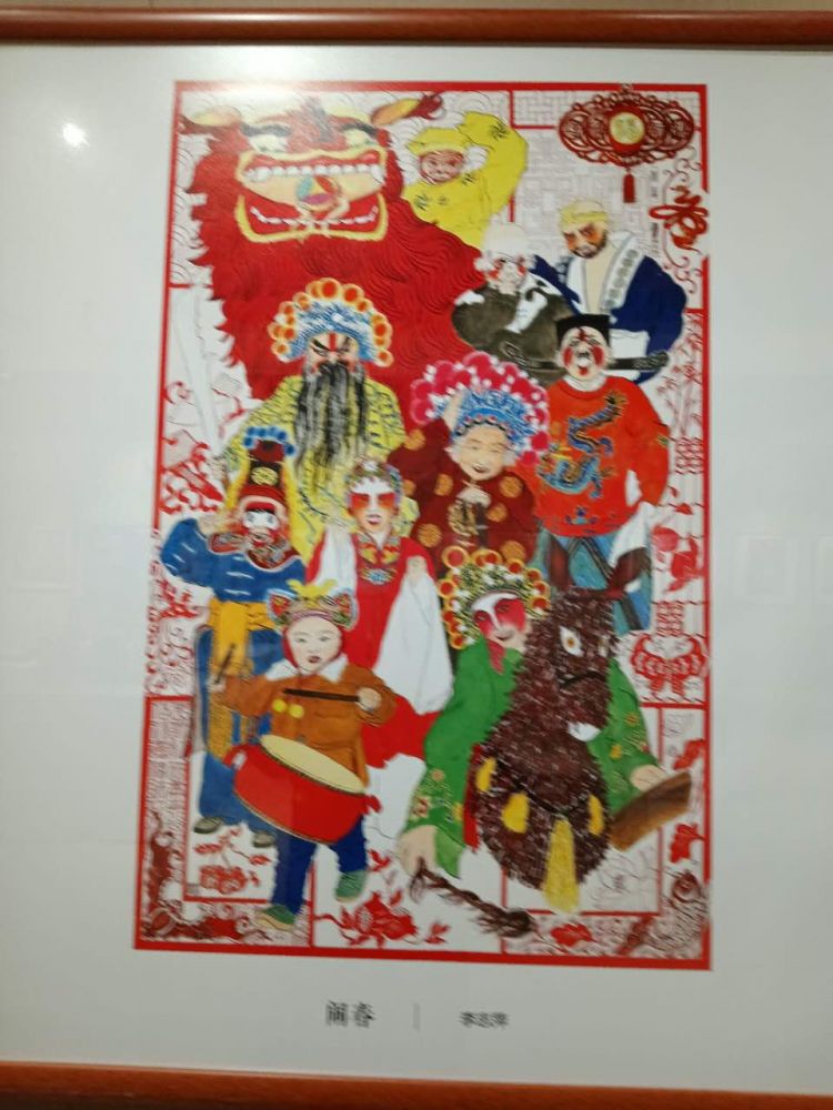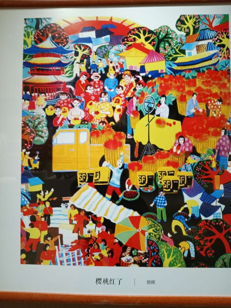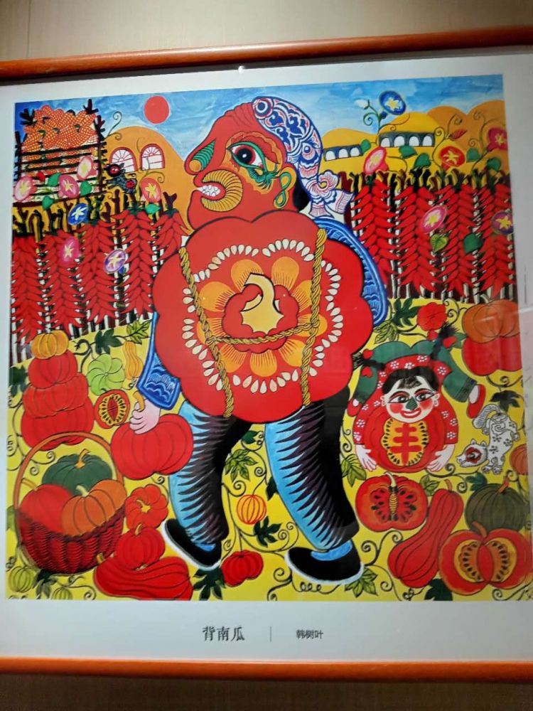 总体印象是,这批民间画一些画手受过一些美术训练了,作品有了透视关系,作品更细腻些了。想我若干年前也看见听多“户县农民画”,主要装饰在一家连锁饭馆“永明岐山面馆”的各个门店墙上。。。一晃十几年过去了,一样的民间画,画手们进步了(也可能是新一代农民画手受教育多了),画也更好看些了。因女儿是搞美术的,我留心地给每幅画照相,很多从构图到配色都挺有特点。我不太懂了。班门弄斧了。