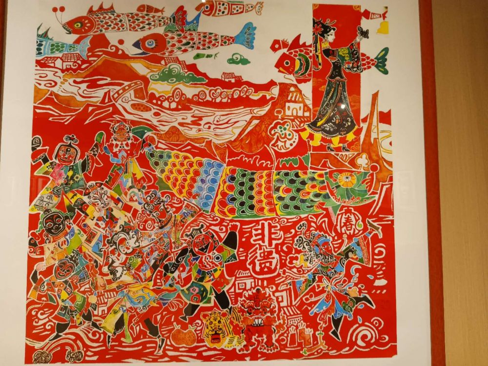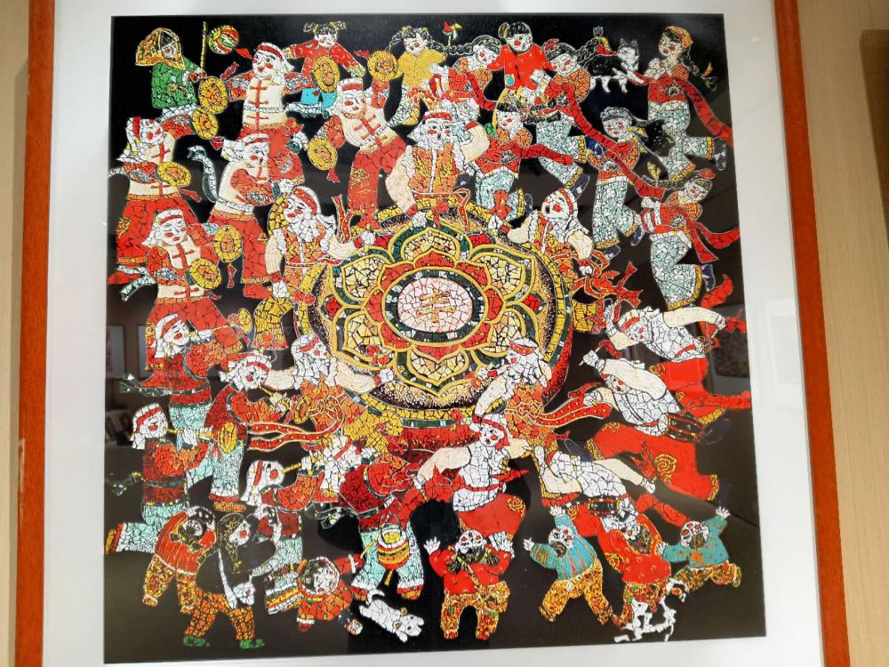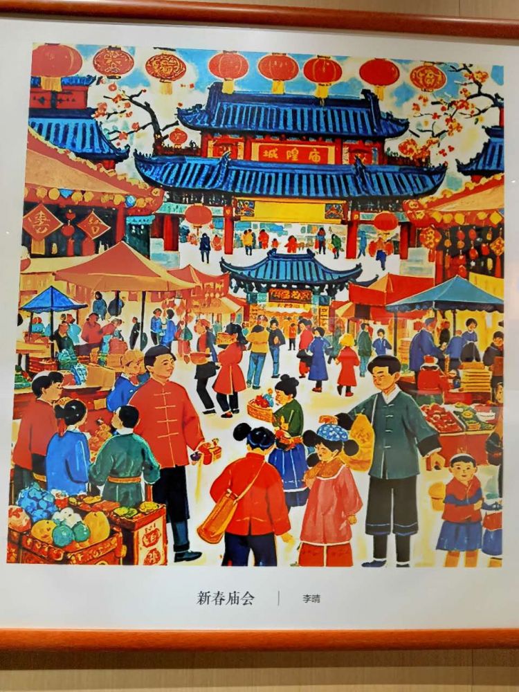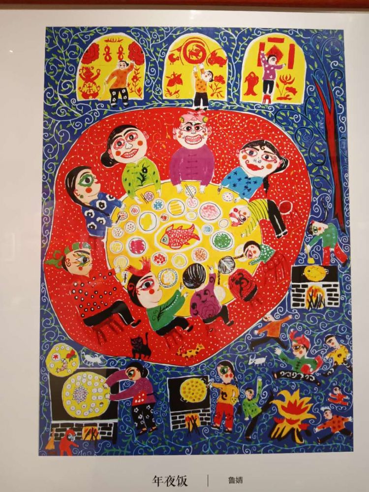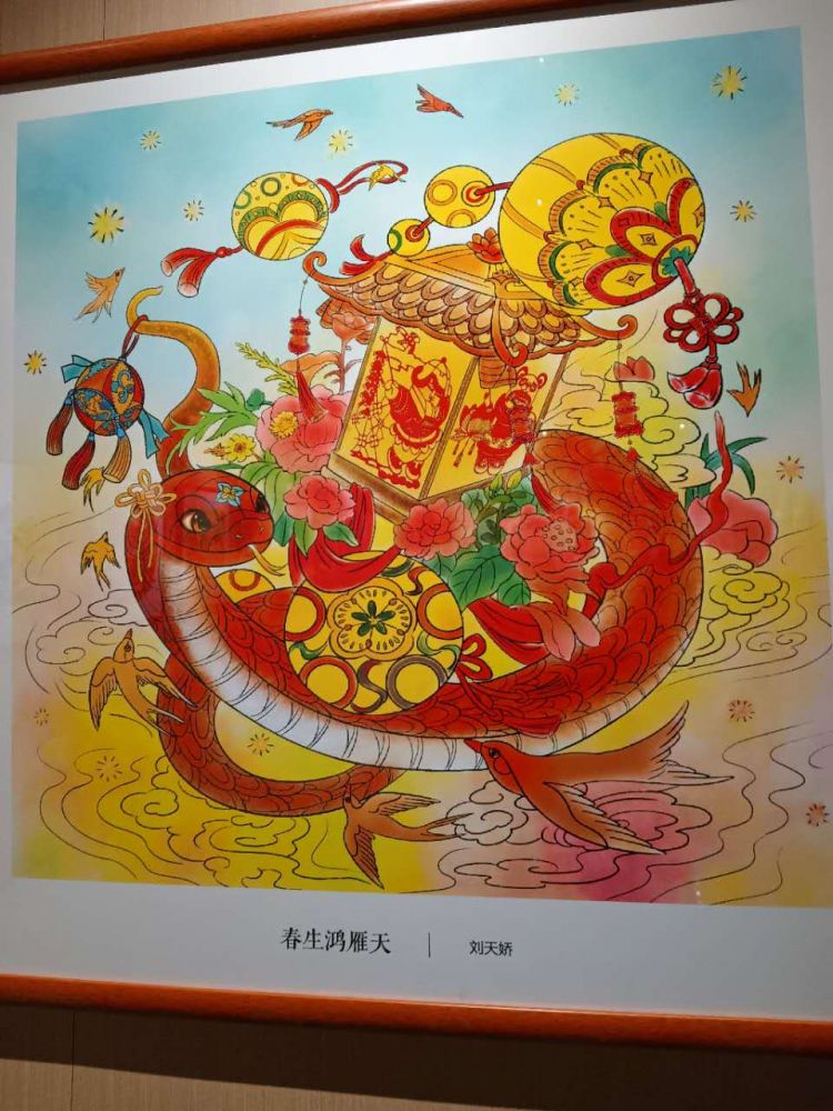 总体印象是,这批民间画一些画手受过一些美术训练了,作品有了透视关系,作品更细腻些了。想我若干年前也看见听多“户县农民画”,主要装饰在一家连锁饭馆“永明岐山面馆”的各个门店墙上。。。一晃十几年过去了,一样的民间画,画手们进步了(也可能是新一代农民画手受教育多了),画也更好看些了。因女儿是搞美术的,我留心地给每幅画照相,很多从构图到配色都挺有特点。我不太懂了。班门弄斧了。