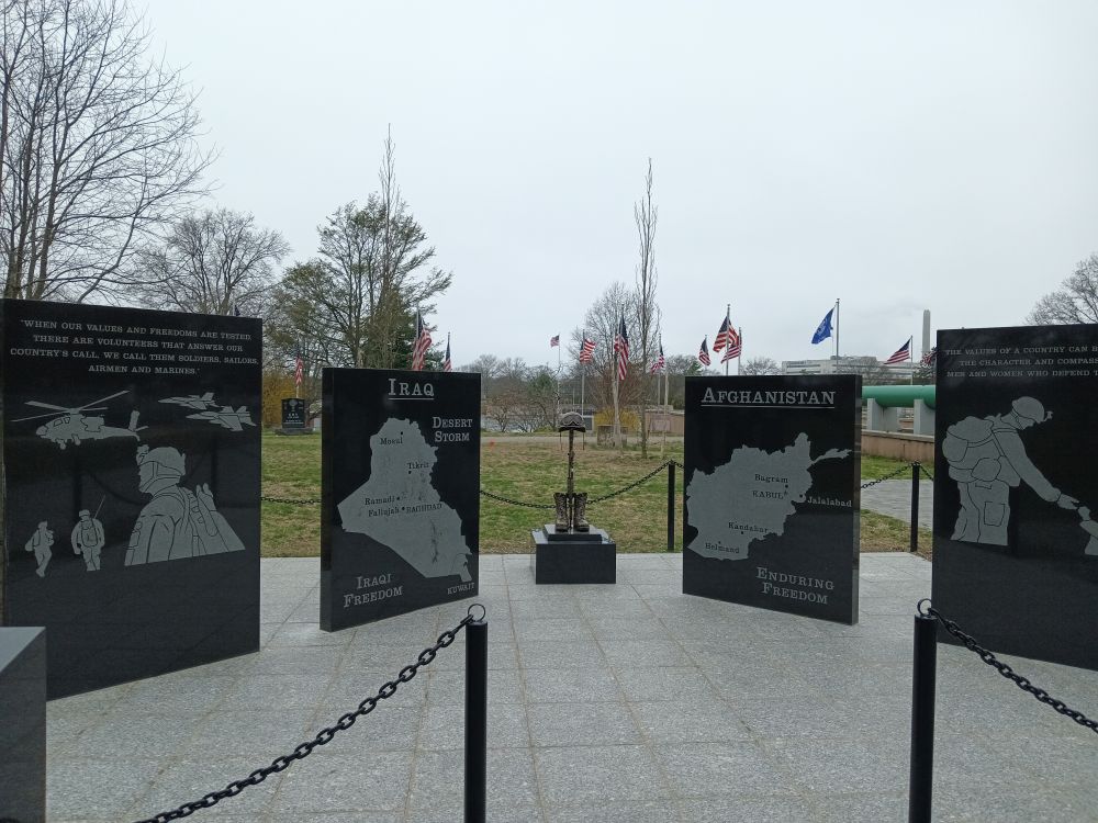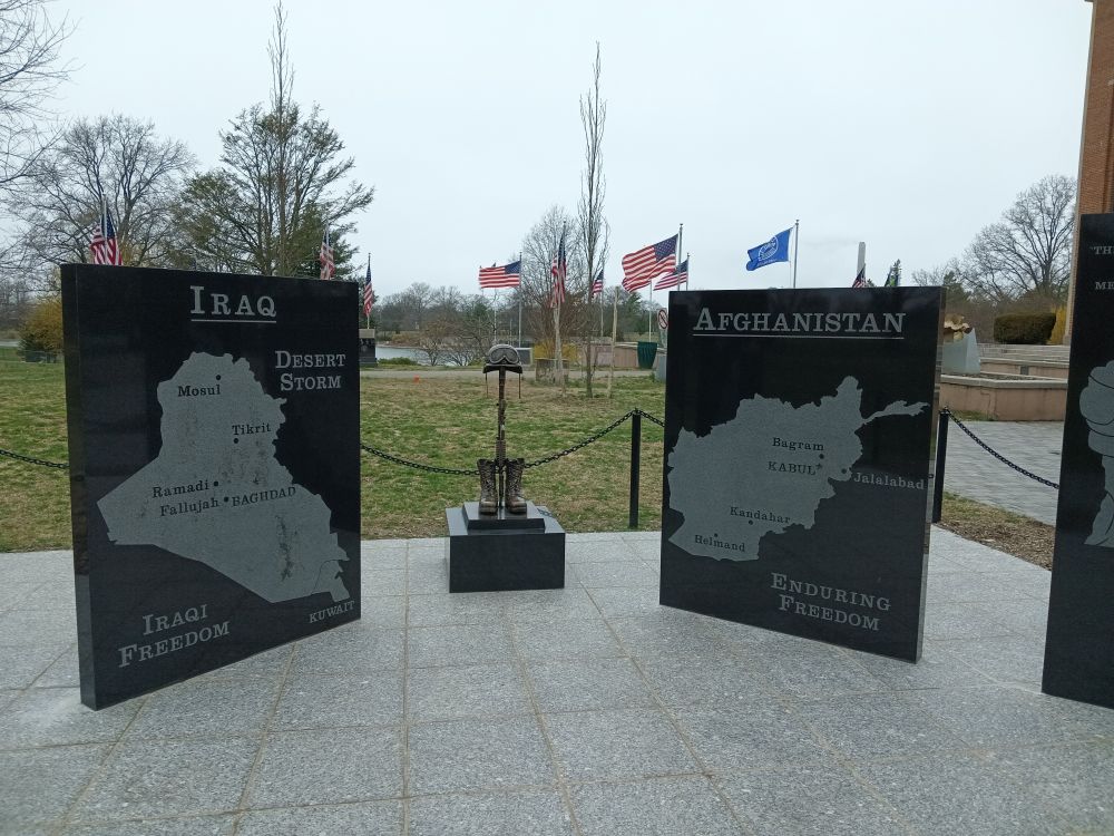 那组新雕塑,是为了阿富汗战争而筑立的。于我,阿富汗战争是新近的事物,前总统拜登指挥的阿富汗美军快速撤离,在报纸上曾引发大讨论。而今,盖棺定论的东西就在眼前。见图。
