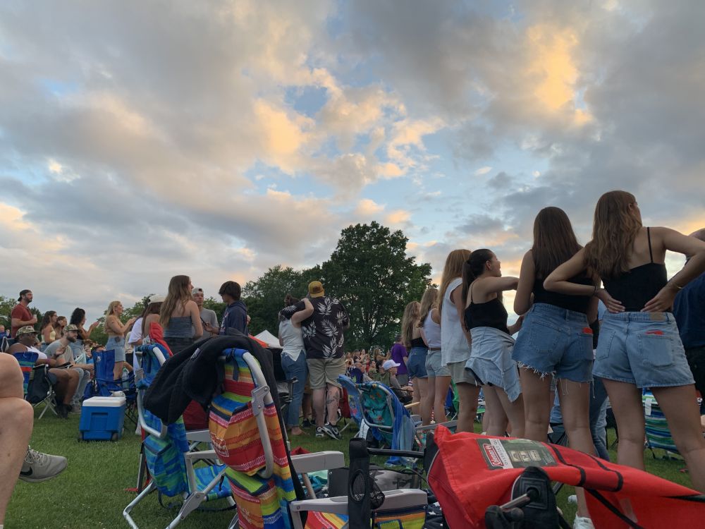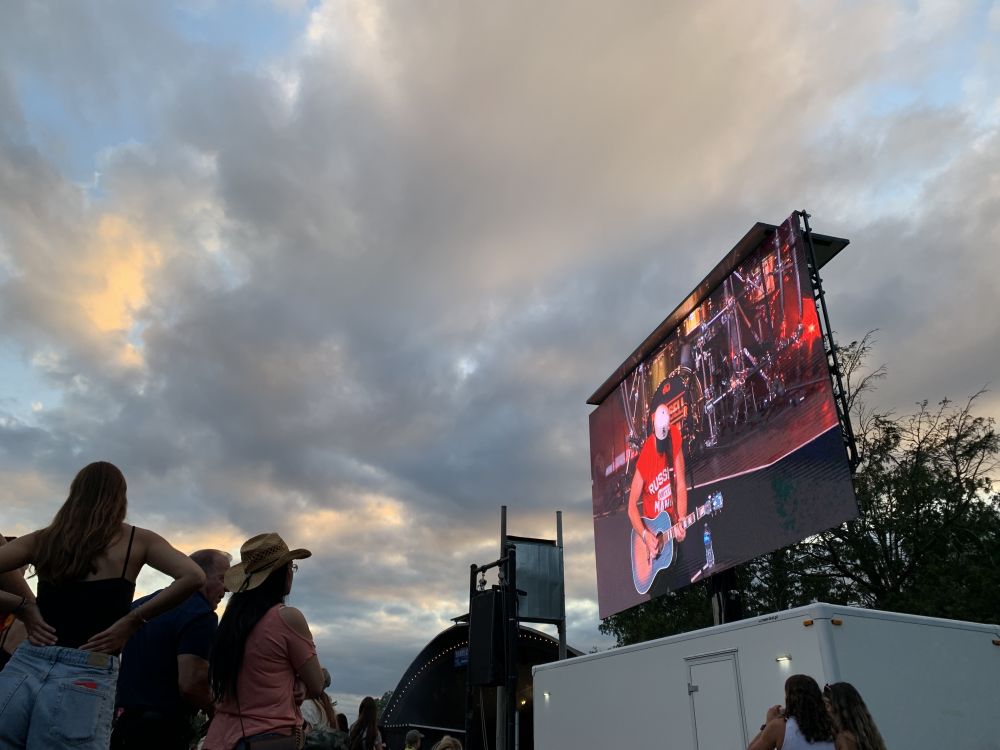 先说“Russel Dickson”演唱会。我踩着点儿来到露天草坪剧场附近,发现这晚的演唱会倍受欢迎。Why?我搜寻了四个停车场(那公园930英亩大,有近十个停车场,但我是到一个较远小型停车场才找到趴车位。我们还未走近剧场,就听见强劲的音乐声音,见到满坡地草坪的听众。我们在近台右侧的大视频附近找个位置,随地坐下来,我们前后左右,都是年轻人们,也有些有成年孩子的家庭组。
