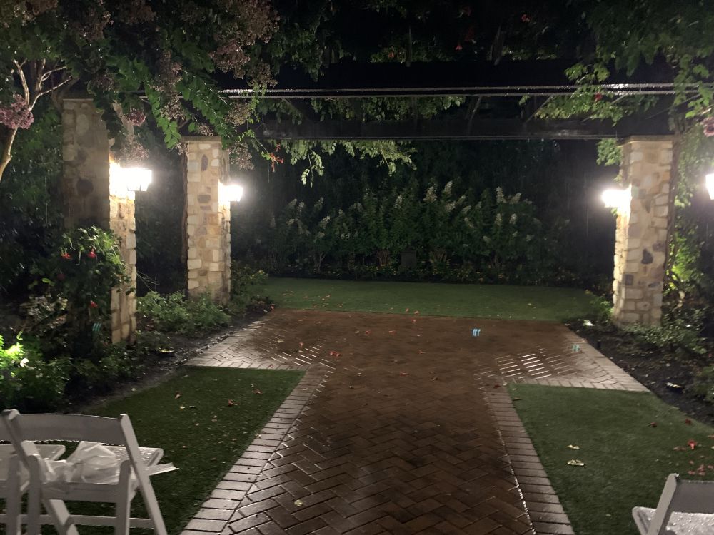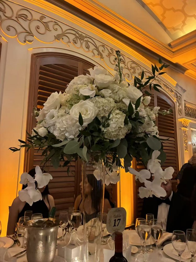 到了晚六点多点,我忍不住叫孩子们早点出发。长岛那镇我们从未涉足,点对点呆吃饭那地儿二三小时似有点浪费,先周围转转比较好。于是我们早半小时到了晚宴现场,一个古香古色,仪式感挺强的私密的婚宴礼堂,我放下孩子们就开车离去了。我得找个地方呆着,就开去两英里外的电影院,选了个叫“the rose" ,由“卷福”主演的浪漫喜剧片。对我来说,在陌生的mall里的电影院看电影也是头一次,这不逼到这里了吗?难不成妈妈司机等晚宴完毕的几小时中间,大街上乱逛,还下着雨。索性,电影院很大选择多,影院环境也不错,影片质量也不错,很合适的安排(看来得相信连锁的力量,即使在长岛深处,amc 也是amc,提供一样的服务水准和环境)。看完电影出来,大mall 基本所有店都关了,空荡荡的停车场里,我在疾行找车。雨夜晚上不很好开车,我也如约回到婚礼会堂的院子里。“猫”在车里等孩子们,顺便转转它的花园庭院(那礼堂停车处能停了六十多辆车,员工停车区能有四十辆,都满满的,我冒险在员工停车区并排停,反正那员工们都一起下班,不会早出来的的)。那院子里,神奇地没有一个人(估计那四十辆员工车的主人,在服务楼上楼下两个婚礼四百多人呢!可是没空看护“场院”,而且这地儿估计治安挺好,安静少人),就我举着个伞,慢慢在庭院各处信步(也不敢在深处多逗留,若是冒出个歹徒,把我伤了,喊人都听不到。浅步走走就好!哈哈!即使晚间,那庭院看起来也挺美,有花树弯成的高高的拱门几个,有小桥流水喷泉,有长燃的火钜盏两个在高处,有些清幽有些神秘。。。几次电话催促之后,孩子们终于出来了,兴高采烈的,还喊着遗憾没吃到第几道餐呢,没食甜点和婚礼蛋糕。可时间已经十点多些了,再等下去这“司机”很有意见啊!
