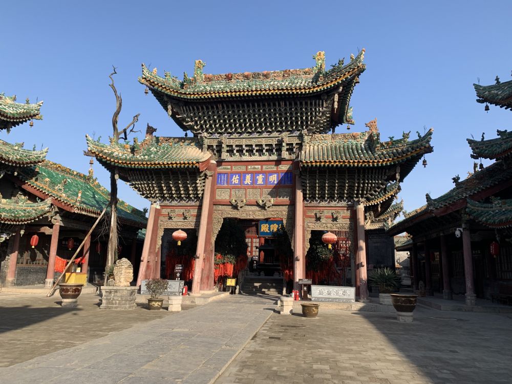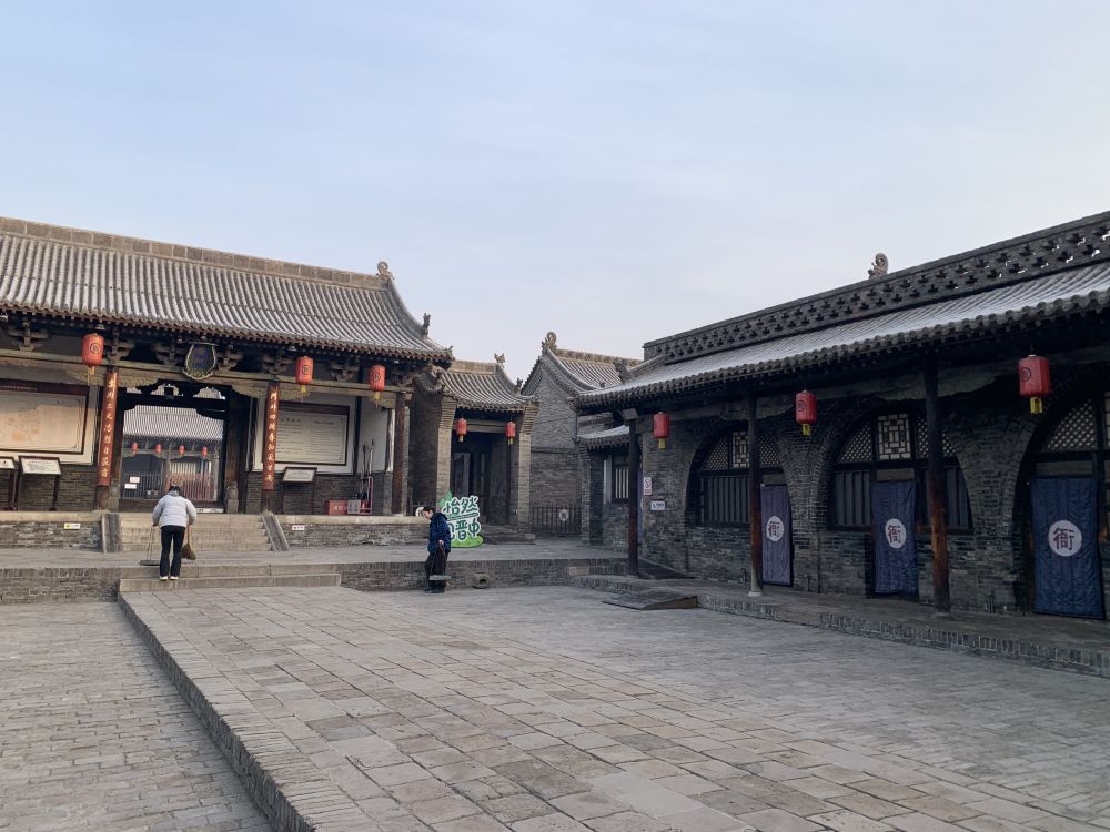 先说平遥古城,我听闻这座古城很久了,它是中国规划届大师阮仪三最先发现并提出做整城规划保护的历史文化名城。那城府本身至少六百年历史了。在平遥那日一早,我慢慢从北门外附近,沿城墙外公园行走,一直走到西门才得以进入城中。依我看,平遥古城像是缩小版的西安古城,四面只四个城门,城外有护城河,也许某面有瓮城。整个城墙角楼等都是灰砖灰瓦为主色调,在北方清冷异常的早晨,别有一种庄严肃穆的味道。我从西大街一路闲走,路上两边很多平层房舍,大多有商铺门头,十分之一有开业。我蹩进去一家供应早点的小饭馆,一位朴实的壮年男老板,给我炒了盘抿节条煮了碗小馄炖,吃得很舒服。它饭馆墙上,是本店特色餐食照片,可以“傻瓜式点餐”,很直观。我最印象深,原来山西人把用紫铜火锅做容器,上布“码得整整齐齐的各色丸子菜品”的那道菜,视作待客上品。我原被人款待过这种形式的菜,那时是小抱怨为何用这么老式木炭为燃料的火锅,耽误吃饭时间,没理解款待方的美意。年轻时不知道的事情可真多啊!哈哈!