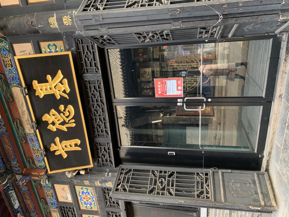 我意思一步步走过平遥城西大街南大街,大约感觉它的体量两公里乘以两公里的一座古城,现今城内尚有五万居民。因城区保护,不得有机动车,故古城整体是旅游导向的。城市并无银行邮局政府机构等实际运行的单位。故冬日的城颇有萧瑟之状。因所有沿大街房舍均为商铺,业态又单一,游客不多,店铺主人恐怕很踌躇是关门还是开门。我见南大街上的肯德基也是古香古色的,从十一月份季节性关门。