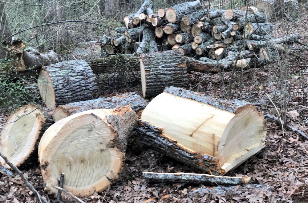 吃多了这种壕菇也烦,总想换点花样,趁着今年初砍了一棵巨大,直径三尺的poplar树的机会,让砍树公司给我留下了一个高高的树墩子,然后树干切N段,分成几堆,堆在后院森林入口处,我买了各种蘑菇种子,和工具,在树段上种了很多不同种的蘑菇种子