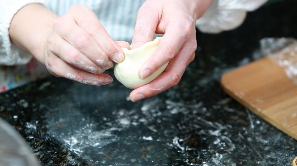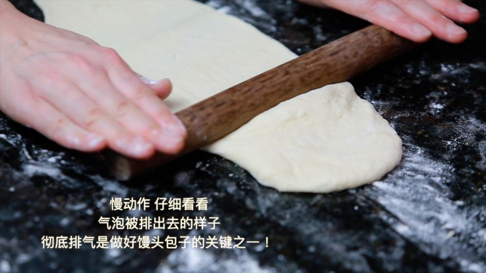 我是用仿压面机的方式用擀面杖来给面团排气,光滑面团,