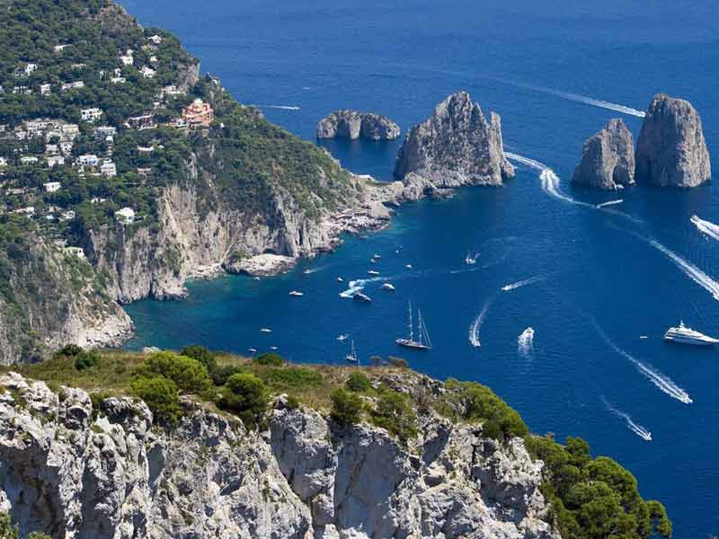 晚上回来,在火车站附近的中国大龙宫饭店吃饭,那里和旅馆只隔一条街。 饭店里没有其他客人, 老板娘就过来和我们聊天,她说她是浙江青田人。得知我们明天就要走了, 竟然还没去过卡普里 岛,很为我们惋惜。 “很近的啦, 只要坐半个小时的船就到啦。”同行的小荻一听, 就嚷着不 要去罗马了。 她说上大学时就常伴着卡普里岛之歌跳舞,现在到了门口,哪有不去的道理?我正 边揉着生疼的左脚, 边寻思怎样写一篇庞贝古城的游记,听小荻这么一说, 马上表示赞同。白 天在庞贝古城走了四个小时,明天到了罗马,还得顶着烈日走路看古建筑, 我真怀疑左脚要残废 了。老吴说只要不在那不勒斯呆着,怎么都成。另外两人也没反对, 事情就这么定了。