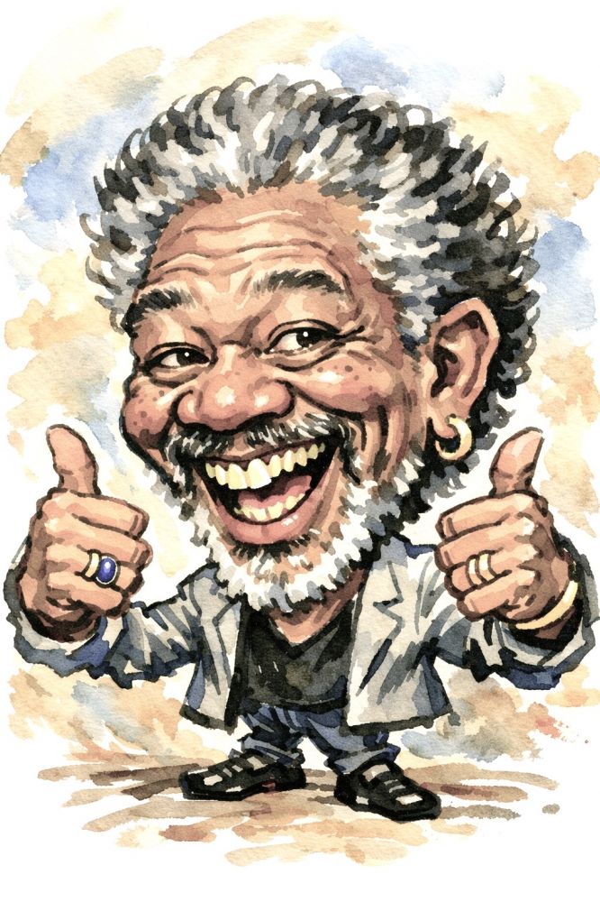 苏向东|涂抹一幅美国影星摩根·佛利德曼的水彩画
