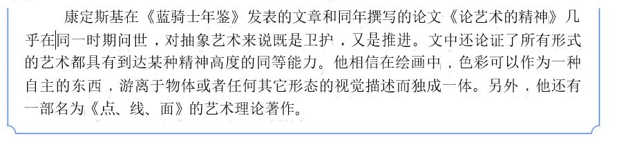 当然,到了康定斯基,则是系统化的寻找物质中的灵魂美:
