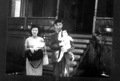 郭永怀、李佩一家在美国家门前