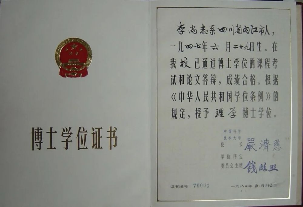 图五 李尚志的博士学位证书