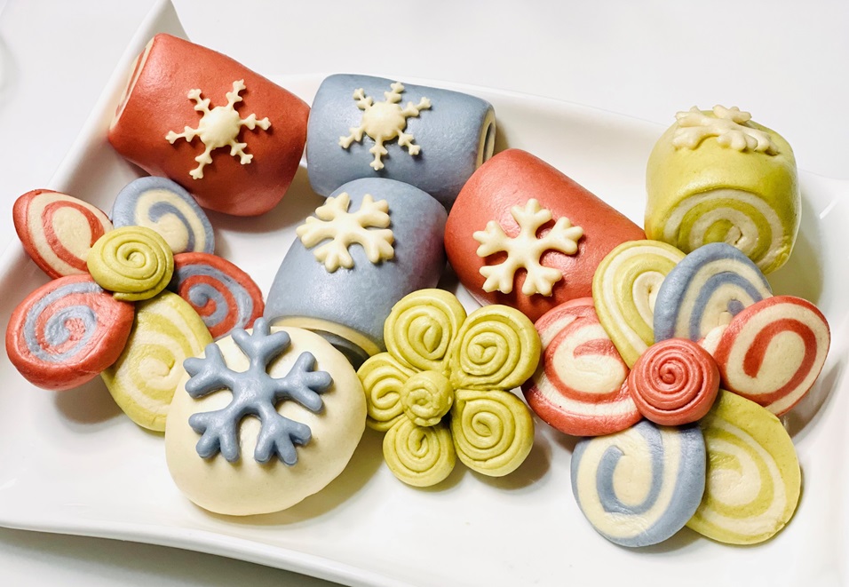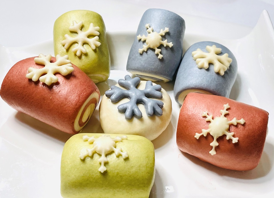 圣诞来临,做些应景的节日美食,可爱造型馒头。 雪花迷你彩色刀切馒头,简单却亮眼,令人爱不释手,边角料做的多彩花瓣馒头,一瓣瓣撕着吃,漂亮养眼又有趣。口感宣软蓬松细腻又有奶香椰香。 用天然果蔬粉调色,色泽亮丽又健康。