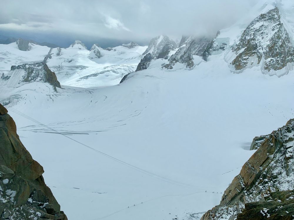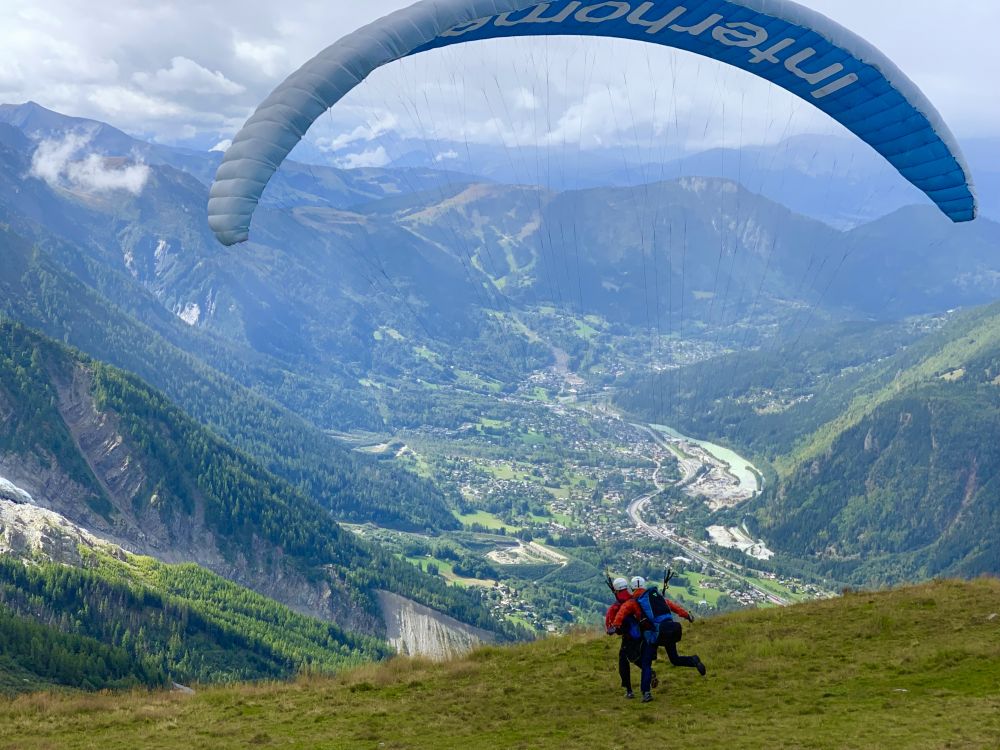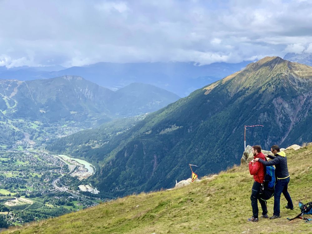 缆车站下方可以paraglide。要了instructor的名片,天气好就给他打电话。可惜他们飘到冰川上时天就开始下雨,第二天也是一天雨,没办法就只好作罢,没法实现每个名山都paraglide的计划。以后还会去Chamonix