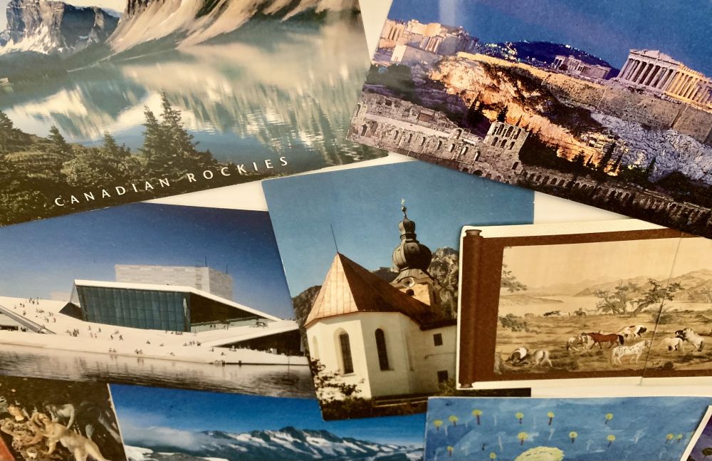 我搀着她和她慢慢走向她故乡的乡村小教堂,在教堂里她一定要给我买一张明信片,背后写上了自己的名字年龄(中间那张教堂照)