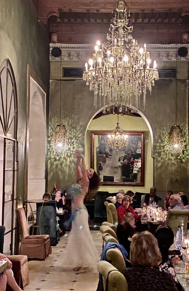好喜欢皇城马拉喀什。原汁原味的旧城里有着一千零一夜中的色彩和绚幻,而新城却又舒适现代。人们好像可以在相差千年的场景中自如地切换。好一个神奇的地方!城中的制高点也是中心是这个宣礼塔,只要看到这个塔就找到方向了。在塔下的商贩处买了手工现榨的石榴汁($2)。夜越来越深,天愈加蓝得纯,街道愈发拥挤,人群也更加轻松愉悦。我们由神骏的阿拉伯马拉着,在旧城兜着风,在车流,人流中穿梭,去旧城中吃晚饭看肚皮舞。旧城真是个奇怪的地方,外表往往很破败的胡弄口,可一转身往里走去,就进入了色彩繁复,装饰奢华的宫殿。当导游带我们穿过一片像闹鬼的废墟去餐馆时,团友们都不由得踟蹰起来,怀疑会被一棒子打晕卖掉。可是就十步开外。到了另一个奢华灯火辉煌的世界。精致的菜肴,美丽的瓷器,妖娆的肚皮舞女郎,让这个晚上如聊斋一夜,幻梦幻真。好在有录像照片为证。