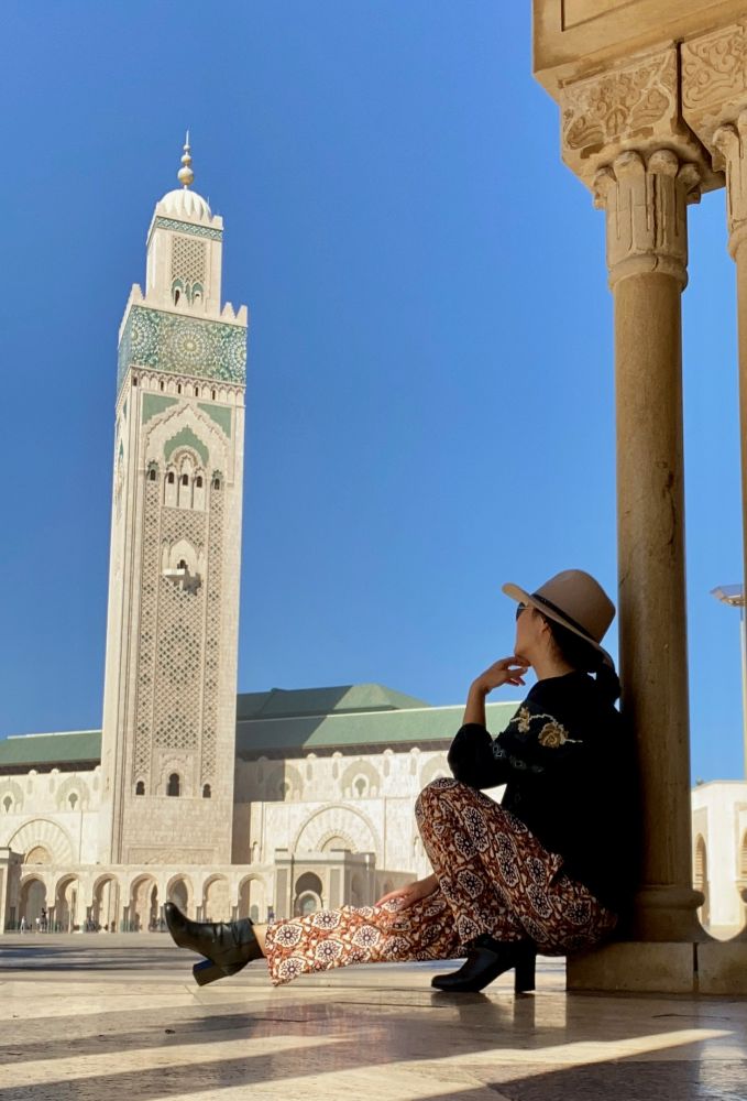 周日,2/23/20,摩洛哥之行的最后一天,从马拉喀什到卡萨布兰卡,重新回到行程的起点。三小时的路程,近中午时进城游览街景。Rick's Cafe因北非諜影(Casablanca) 這部老電影而聲名大噪。高耸的哈桑二世清真寺(La Mosquee Hassan II),是全球第三大的清真寺,而且是世界上唯一的一座直接建在海上的清真寺。导游说,为了建这个清真寺,全国人们都被强制性扣工资才得以建成。整个建筑群的确明朗,庄重,现代,奢华到细处。入住了此行最奢华的酒店,从宽大的洗手间可窥之一斑。房间内可看到一片白色建筑物拥簇下的高耸的清真寺。因为整个城市建筑以白色为主,卡萨布兰卡又叫做白城。晚上又是告别宴,听着现场煽情的老歌,大家随着音乐跳着笑着,气氛高涨,有着依依不舍的团友情。