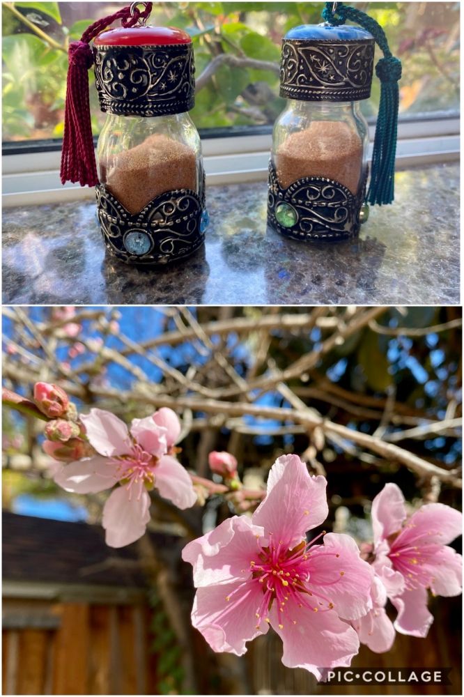 转辗回家后,后院的桃花开得正好,不稠不疏。从摩洛哥带回来的小瓶被放置在窗前,里面盛放着撒哈拉沙漠金黄色的细沙,记载着我曾经的足迹。