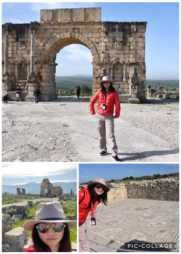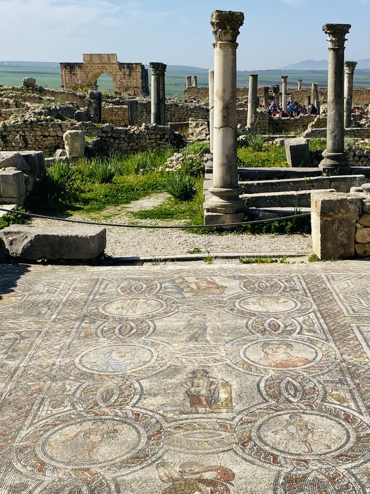 从拉巴特到菲斯的路上经过瓦鲁比利斯(Volubilis),瓦卢比利斯是摩洛哥保存最完整的罗马古城遗址,也是世界文化遗产,建在一片丘陵之上,鼎盛时期占地40公顷,有2万5千人口。这座建在一望无际的肥沃土壤上的城市,为整个罗马输送了大量小麦、橄榄油。如今断壁残垣下,精美的马赛克地面历经两千年风雨却依旧鲜艳富有生气。触摸着时光的沉淀,不敢言我。