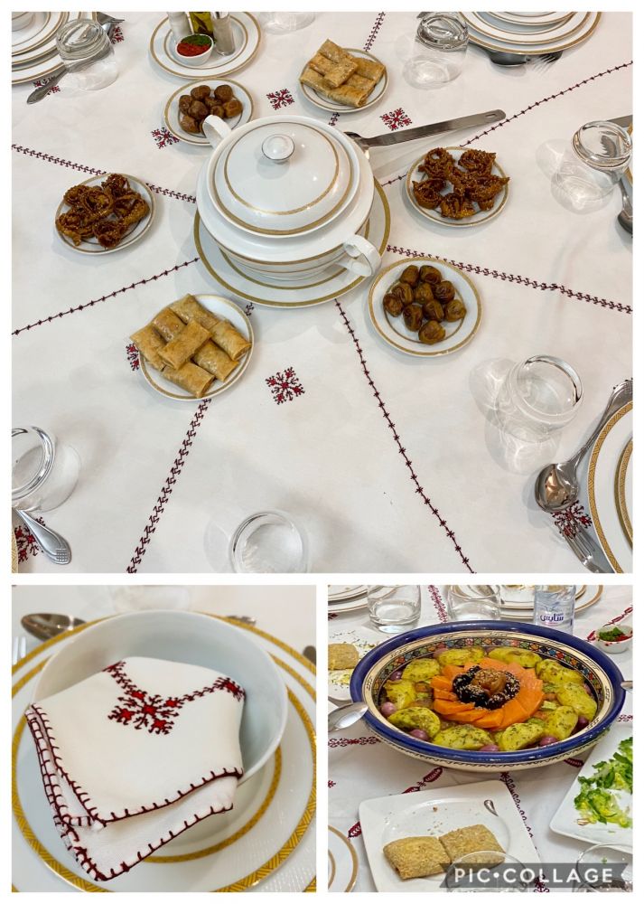 晚饭去吃当地一家人的私房菜,总共四桌,原汁原味的摩洛哥美食,从汤,主食,塔吉锅, 到甜品,全是女主人亲手制作。我一个人包了半罐子的汤,太好喝了! 我好多年都没有吃这么撑了。由此爱上了摩洛哥美食,也爱上了摩洛哥精致的餐具。爱上一个地方从胃开始。
