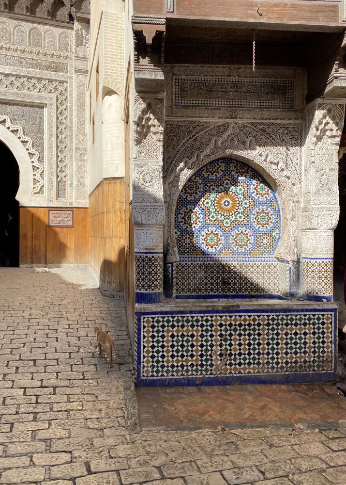 早就听说菲斯的古城是鲜活的“天方夜谭”,老城区如迷宫一般,9,000多个狭窄街道小巷错综复杂,窄处仅容一人通过。里巷幽暗,不知日月。据说古城至今都无地图,GPS也毫无用处。感觉可以在古城中迷路至老死也出不来。所以我们紧紧跟着导游,不敢掉队。