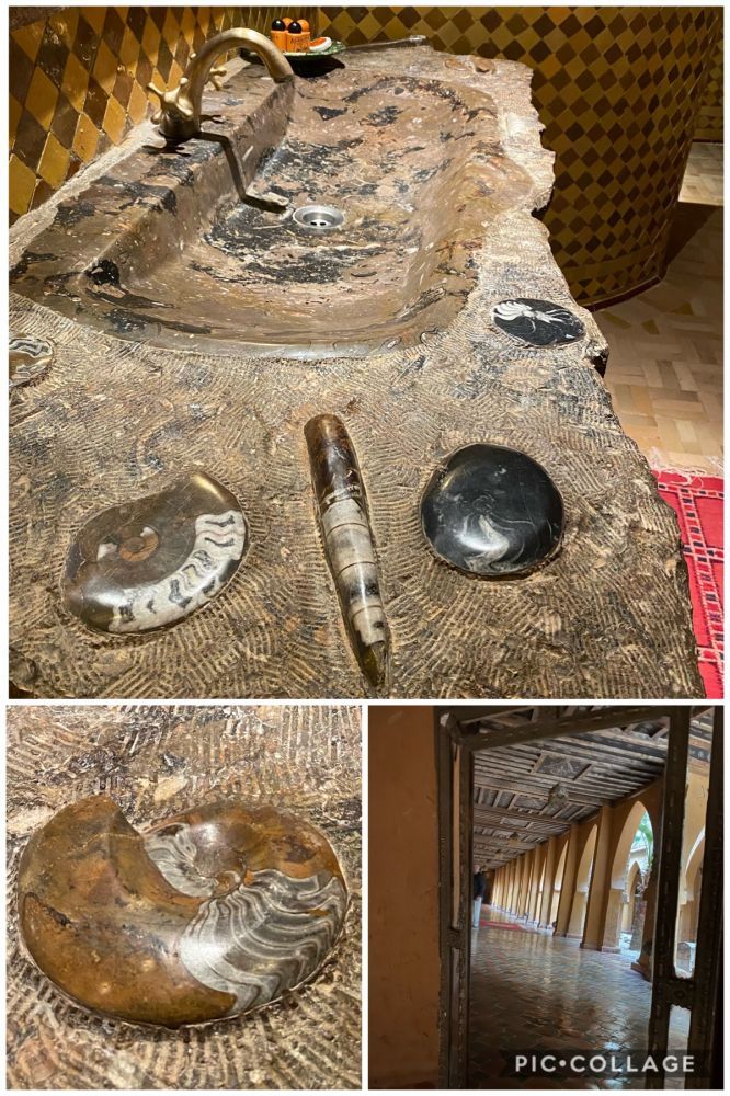 虽然这儿是沙漠,可是几十亿年前却是汪洋,有开采出来海底沉积而成的矿石为证。矿石里有很多海底生物的化石。难怪旅馆的洗手池是这样的。用着几十亿年的化石做洗手池,真是豪气啊!我用5美元买了一块化石回家继续体会。