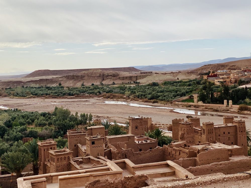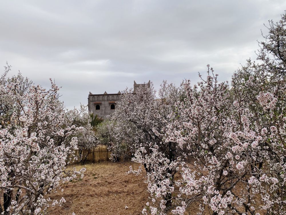 周四,2/20,一早离开Ouarzazate前往四大皇城之一的Marrakesh(马拉克什)。一路上高耸崔巍的Altas山脉相随,因为高海波(最高处2200米),山顶上还常年积雪。我们今天就要穿越这处山脉。一路上雪山,绿洲,峡谷,红土,牧场,还有村落里adobe的式四方的土砖院落,美不胜收。途中拜访了Aït Benhaddou,旧时撒哈拉沙漠和内地贸易的必经之地,当年建在这一夫当关 ,万夫莫开的关卡处的寨子是为了便于征税,至今仍有四户人家住在其中。正值杏仁花开放的季节,零星成片的淡粉色为这赤裸的红土地添了几分柔情。