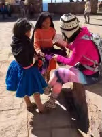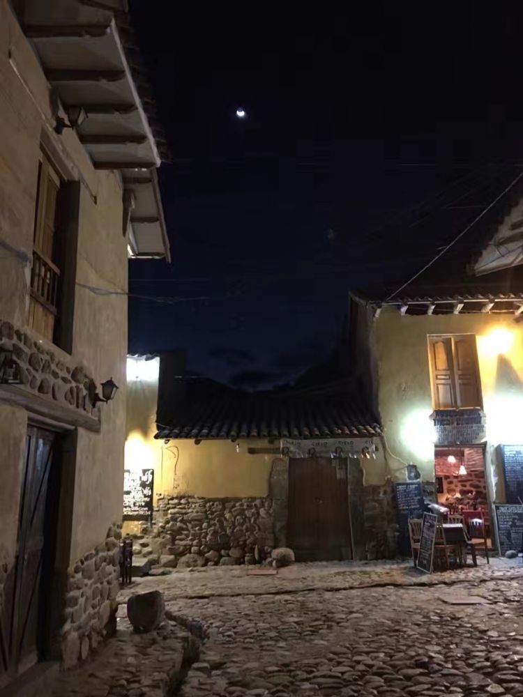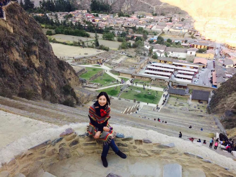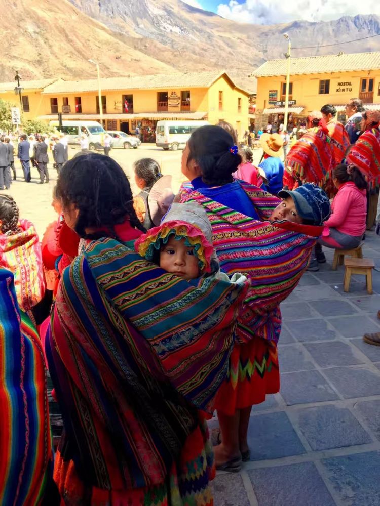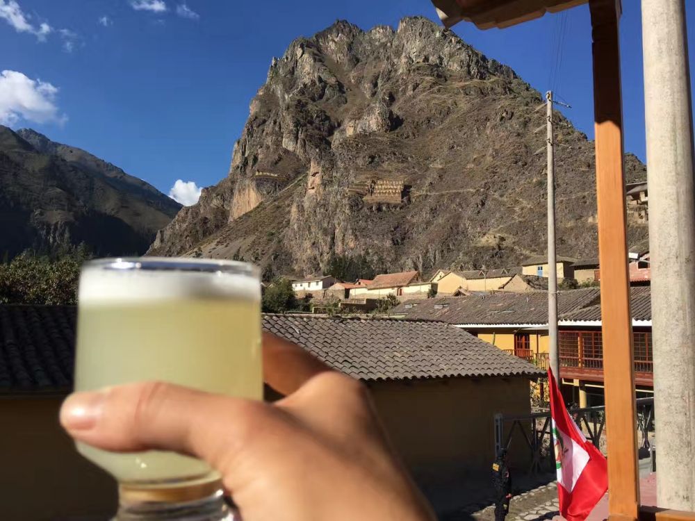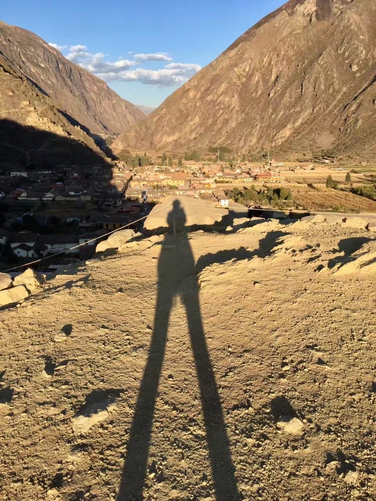 我们在库斯科修整一晚后,包车驶向位于神圣谷的欧燕台,将在欧燕台这座美丽的原汁原味的小镇上呆三晚。中饭时手握玉米酒,面对印加粮仓遗址,镜头中还有秘鲁国旗,感觉很棒!饭后赶紧攀登欧燕台如台阶一般的印加遗址,看那些巨石如此齐整的切割和堆砌,难以置信。夕阳西下,我的影子如巨人般指向谷底。我们就住在遗址边上,从住处可以清晰地看到古阶梯,古粮仓。和穿着如此鲜艳独特的原住民在一起逛集市,连路边闲散的狗都懒得理我们。