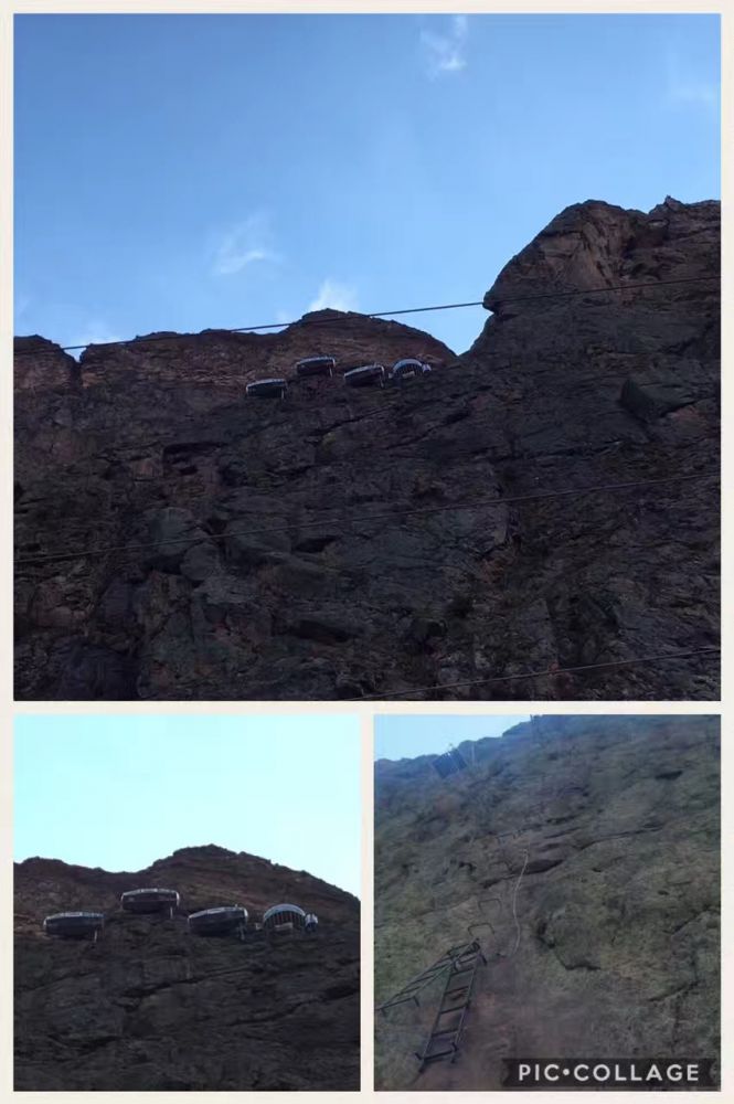 驱车又经过一个梯田和建在梯田上面山头上的皇宫的遗址。山风强劲,那住在这皇宫里的日子怎会舒服呢?遗址附近有个著名的集市,卖旅游纪念品。喜欢秘鲁的织品和手工,其配色也正是我的调调。只是也并不便宜。值得一提是建在悬崖上的胶囊旅馆,四人间,一晚每人四百美金。有绳索和订制岩壁上的梯子供你上去。当然另加钱的话,会有人用绳索将你舒舒服服地拉上去。