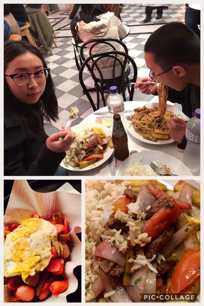 旅途第一晚的住处是利马的青旅。很有细节,可爱的地方。有一条很粘人印加特有的无毛狗,穿着夏威夷的衬衫,见人就贴着。早餐是全有机食品。果汁是用手工现成榨出来的。见识到一种新水果,外表像梨,却飘轻。切开一看,棉絮般的夹层,包着奇怪的果实,吃起来味道还不错。晚上吃了利马特色: Chifa. 秘鲁特色的中餐,非常流行。
