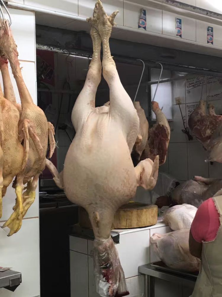 利马的美食!如愿以偿吃了地道的秘鲁菜,特别是口齿留香,清新弹牙的大玉米。喝了久负盛名的发酵的玉米酒 (据说是得人口咀嚼过,吐出来,再经发酵制成),吃得扶墙而出。街头小吃和店里的烧烤,无不刺激着我的视觉。如果说吃是靠味觉,对我而言,往往应该是始于视觉,止于味觉(我不好吃,好色而已)。下图有一只巨大的禽类,在菜市场被扒光了挂在那儿,不知是什么,且称为恐龙鸟吧!