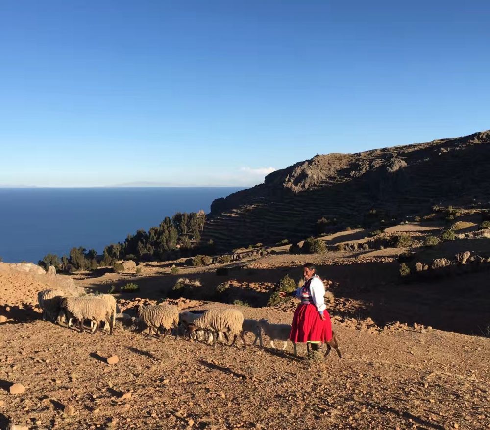离开浮岛后,来到Titicaca湖的第二实体岛过夜。这儿实现共产主义,每家轮流接待客人,统一标准。我们一行七人被寄宿家庭的女主人接走了。话说跟着女主人喘着粗气艰难地爬上山坡进入农舍,真是比咱们农村还要落后的地方:土坯房里搭着四张床,倒也干净整齐,没有电,没有清洁用水,厕所在屋外半山坡。院子里晒着蚕豆,土豆之类。中饭简单却还好吃,原味土豆和一小块咸奶酪,配以小米蔬菜汤。饭后抗高反的药茶。吃完饭去膜拜岛顶的神庙。看起来不远,爬起来辛苦,因为不断攀升到4100 米,高反会更重。总算到了山顶,风光无限。晚上天黑得真快,也黑得真黑,满天璀璨的星云,银河清晰可见。只是冷得刺骨,赶快去上厕所,进小泥屋,在烛光中穿着羽绒服迅速上床,盖上四层厚厚的毛毯,睡觉!这是史上最快的睡前准备,因为没有洗漱条件,也根本不需要脱衣服。刚把被窝捂暖,就听见女儿在轻声叫我要去拉尿,不理,拖了一个小时,哆哆嗦嗦,带女儿去半山坡上厕所。又看了一眼漫天繁星,再次进被窝,两脚冰凉,外加抗高反药物的副作用:手脚麻痛,一夜无眠。