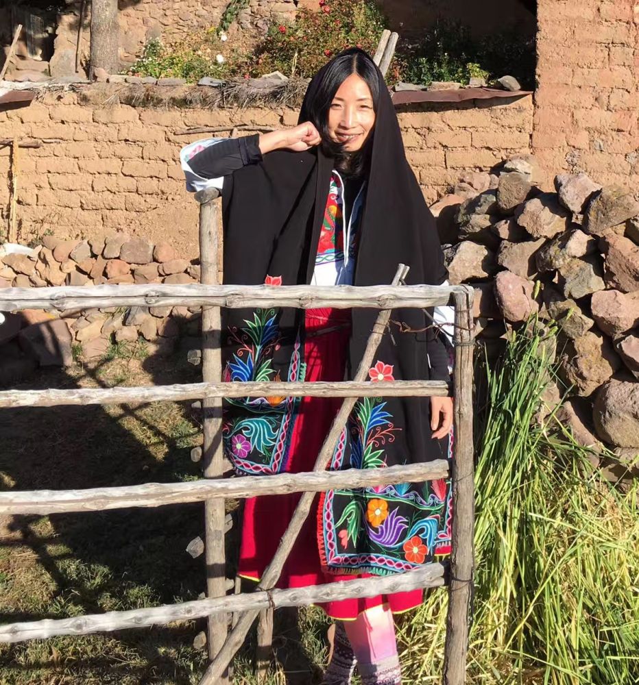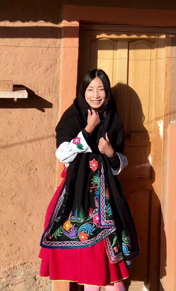 虽说一夜无眠,一早阳光下,万物顿时有了生气,连农家小院都镀上一层金光。我们换上当地妇女服装,赶紧摆拍。金色的阳光似乎让我们秀美起来。