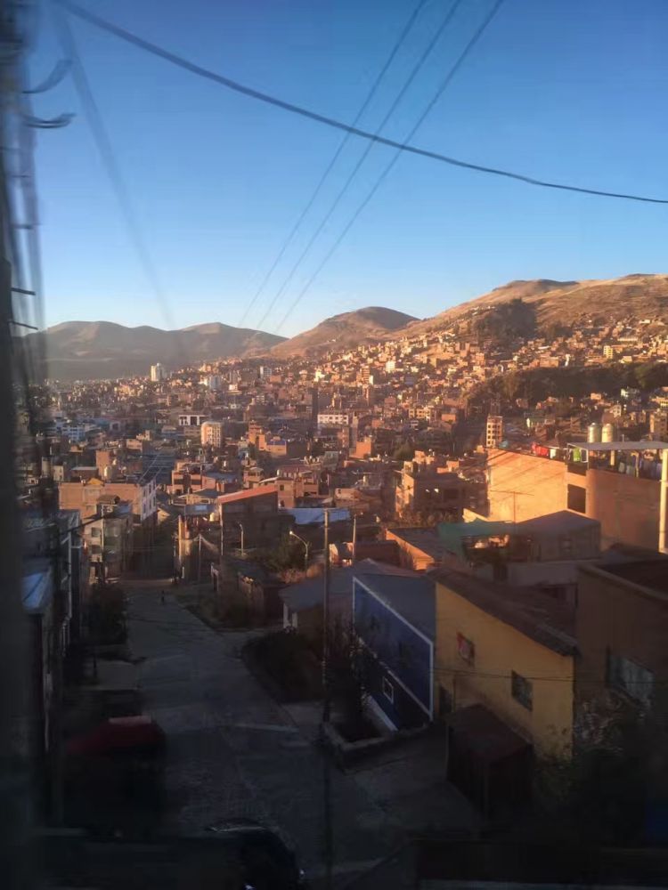 离开浮岛,在Puno 大吃一餐补补在高山湖岛上吃的苦后,我们奔向印加帝国时代首都Cusco。我们订的是7点出发的豪华大巴去Cusco,正好可以吃个早饭再上车。早上我四点半睡不着,干脆起床。大概5点20时赫然发现一个紧急邮件告知我大巴提前一小时6点钟出发!这一阵乱赶啊!总算没误点。原来秘鲁教师大罢工,堵住大巴必经之地。司机需要多一个半小时绕道而行。没有惊醒晨光中熟睡的Puno, 我们悄然离开。