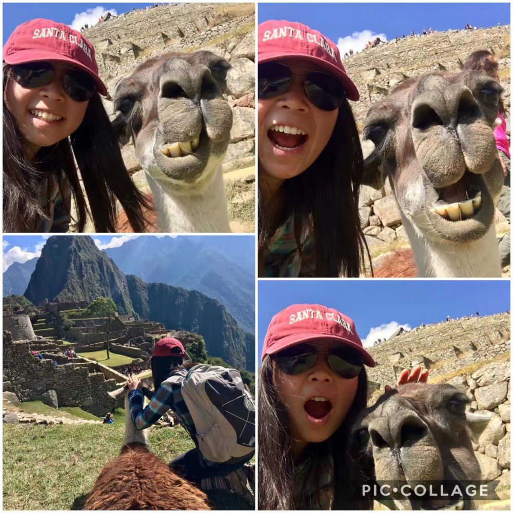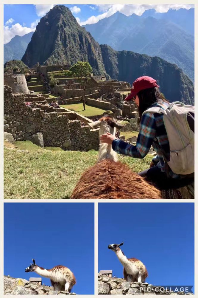 女儿和羊驼在马丘比丘