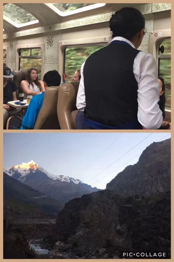 在火车上,经过几天前徒步的入口,仿若隔世。火车外,一丝金黄却不让人觉得温暖的夕阳照在雪山顶,安地斯山脉在阴影中越发冷峻甚至有些残忍。遥想古印加人执着地要在有云雾缭绕的山巅用巨石打造他们梦想的神殿和家园以接近天堂。雄鹰????是他们与上天沟通的信使。(这就是为什么马丘比丘建有雄鹰神庙) 。他们沿着山势开辟规模巨大的梯田收获粮食,放牧获取肉食和纺织品的原料。其纺织品有着艳而不俗的绚烂的配色和精美的图案,让人感到这个民族心里有美,眼中有美,有着自由的灵魂。喜欢古印加的的训言:不懒惰,不撒谎,不偷盗。简单的话语,为人至上的原则。这次秘鲁之行,秘鲁人民的朴实,守信,勤劳和发自内心的祥和给我留下深刻印象。虽然这次徒步的艰辛超高我的预计,浑身透出的汗臭也是从所未有,很高兴看到孩子们从温室里出来,明白人其实可以如此简朴地生活。而我一直以来相信:贫瘠不可怕,可怕的事情放弃自己的信念和对美的追求。