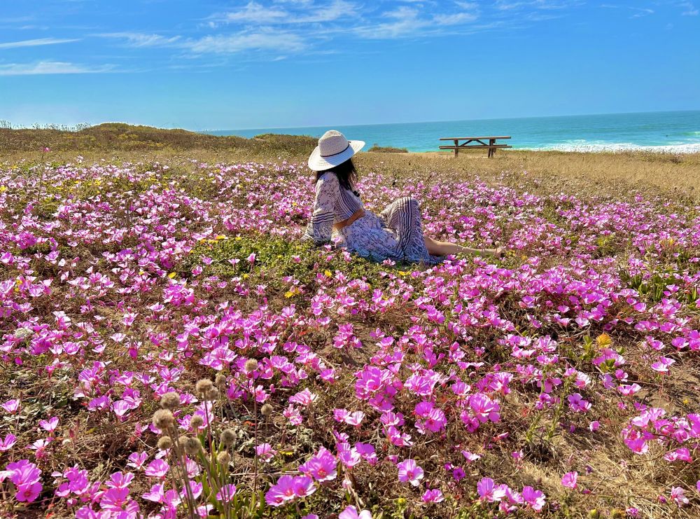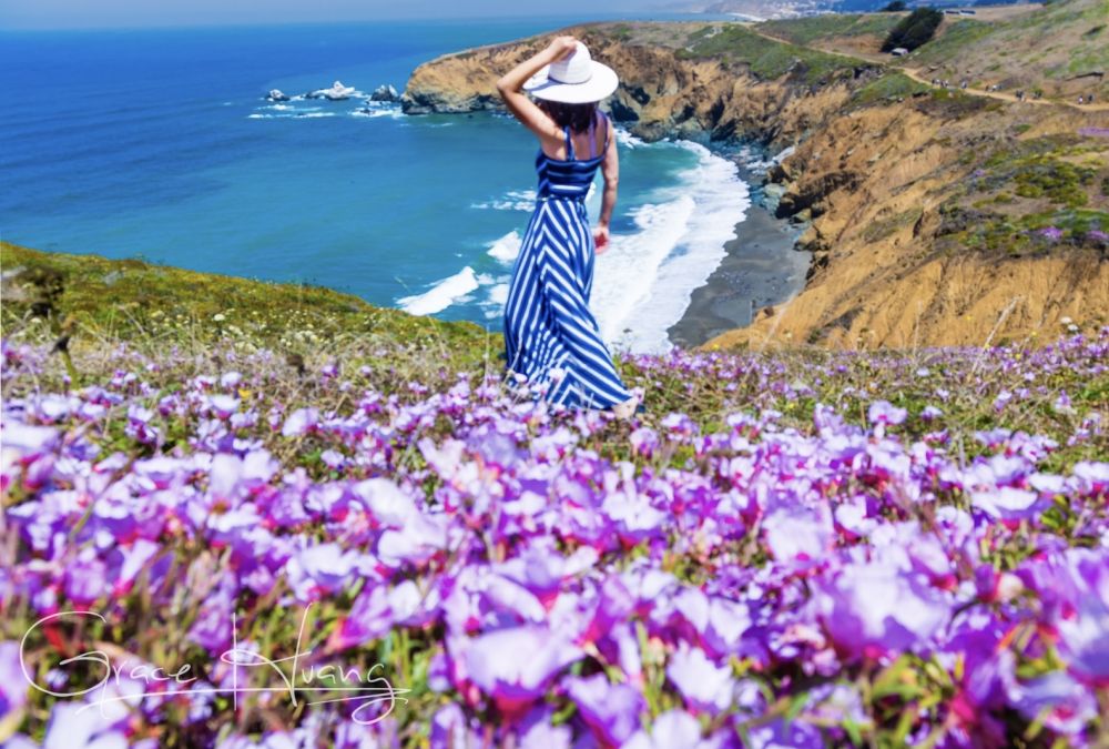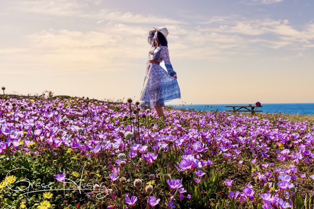 北加州今年雨水多, 野花盛况空前。从初春到盛夏,你开我败,各色野花分分粉墨登场。女人天性爱花,在花海中的微笑,流露内心的放松和愉悦。这就是女人美丽的时刻,女人如花!
