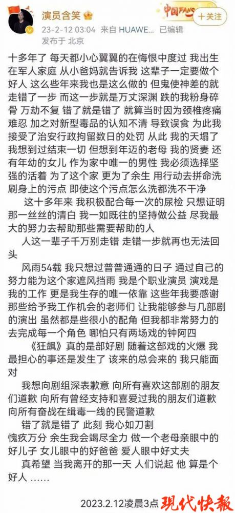 艺人含笑在电视剧《狂飙》里扮演了个小配角,出戏不过两场,在配角群里连前二十都进不了的小角色,突然引起关注了。讲真,像含笑这种年过半百从未红过的艺人,是演艺圈里沉默的大多数,从匪兵甲、路人乙一路拥挤着,讨唤上个小配角,几乎就是他们的职业前景了。演艺圈的贫下中农想辛苦熬成小地主,路漫漫其修远兮。就这样了,含笑还被二流子网民揪出来开批斗会了,因为有好事者查出他十几年前曾吸毒被拘过。含笑声泪俱下地声明:我早就改过自新,早戒毒了呀!二流子们起哄:戒了也是劣迹艺人,就该永久封杀。
