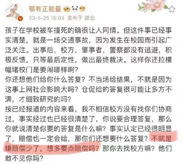 但寻找幕后元凶者能质疑的证据很单薄,大概就是孙旭阳说的:“那位母亲在学校门口,一字一顿地告诉现场的媒体和民众,坐在肇事车的两人,校长,班主任都没有去拜祭她儿子,而还有人自称警察,警告她不能在校门口闹事……这是一个绝望的母亲在控诉,也是求助:大家都看看,他们怎么能这样对待我和儿子呀?”