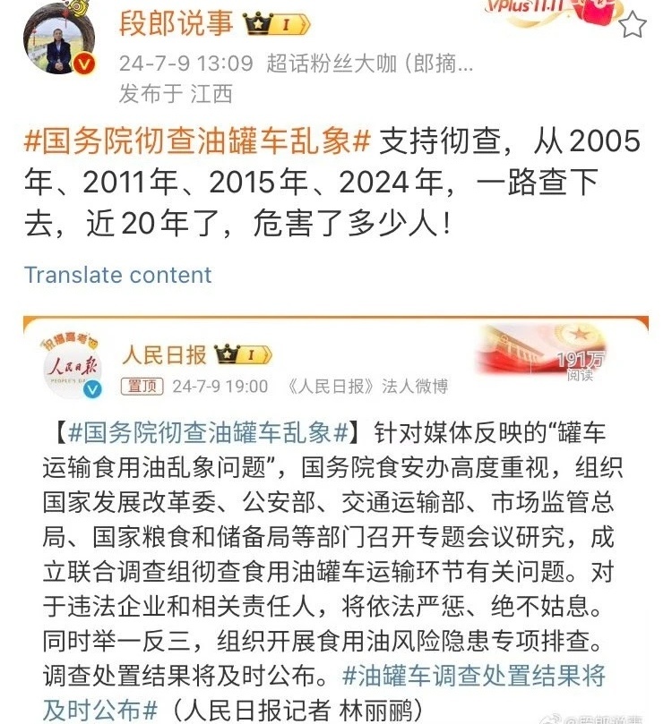 很多人没有煤油的气味记忆,这点微量煤制油很难被嗅觉捕捉。但得知中储粮、金龙鱼等大品牌都使用“多用途混装槽罐车”运送食用油,大家突然有了一种吃屎感。而且,网友发现2005年、2011年、2015年都有对“多用途槽罐车”运输食用油的报道,直到今天,十九年来一直吃着各种化学成分混杂的食用油,恶心感更强烈了。往事如风可以回忆,往屎不堪回味,现场吃屎的禁忌是不可咀嚼,以前吃过屎的禁忌是不可回味。比如,昨夜洞庭湖溃口封堵合拢,现场红旗招展锣鼓喧天,连将功补过都算是冒功,却现场演上了庆功会,这是就吃屎吧唧嘴的典范案例。