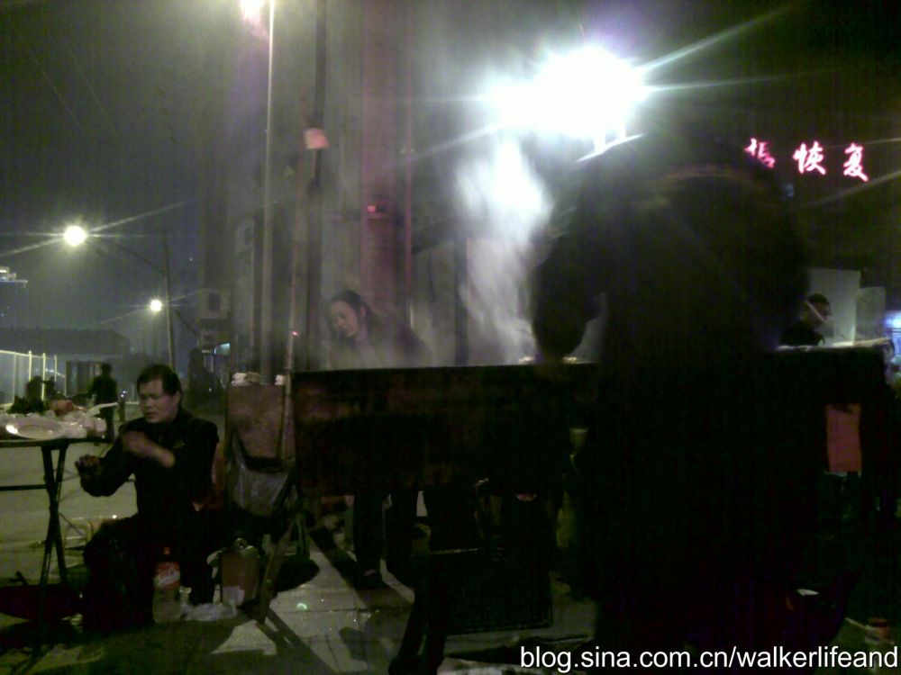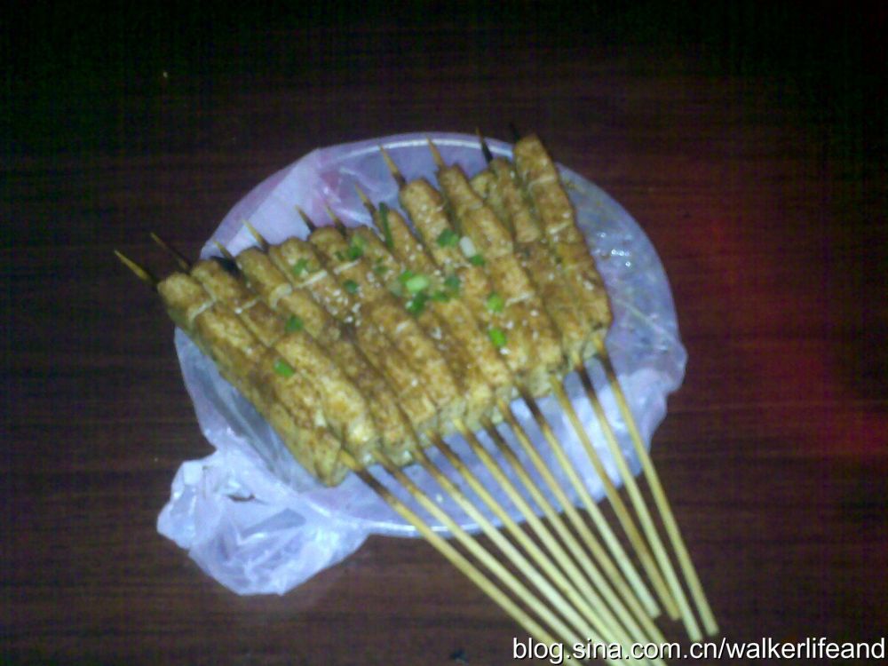 华中师范大学大学对面的烧烤摊老板很讲究的告诉我,“凑干子,补冷七,咬七,就七斗付撒!”原来,“臭干子”名声太臭了,本地人都不吃了(具体怎么做出来的,实在不能讲,不然我会吐的);那好吧,就吃烤豆腐,“老板,来三块钱的”。