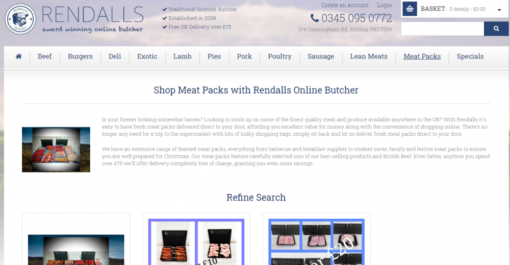 3.价格低廉、购满 £75 免费送货的 Rendalls Online Butcher