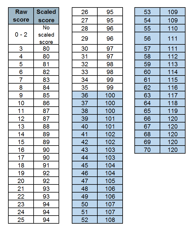 下面是2019年英国小学毕业统考三科的原始分数和量尺分数转换表(转换表每年都略有差异):