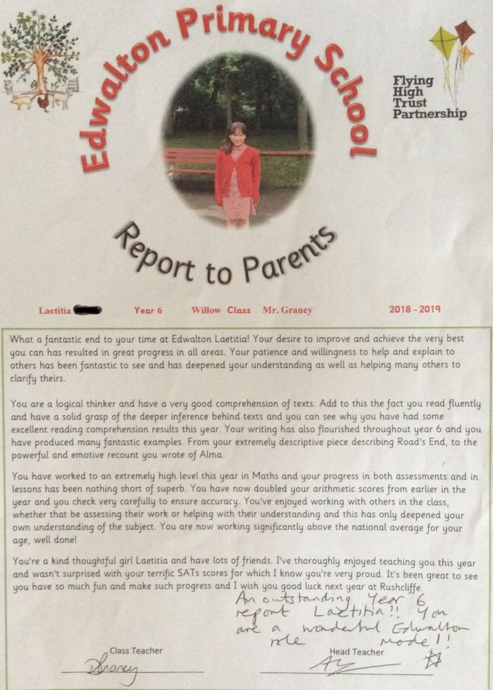 细看毕业总结,总结中对学生成绩所属类别的用词十分考究。没有达标的学生被归为“working towards expected standard”类(意思就是正在争取达到要求的标准);达标的学生被归为“the expected standard has been achieved”类(已达到要求的标准);高分段的学生被归为“greater depth”类(对知识有更深层次的认识)。