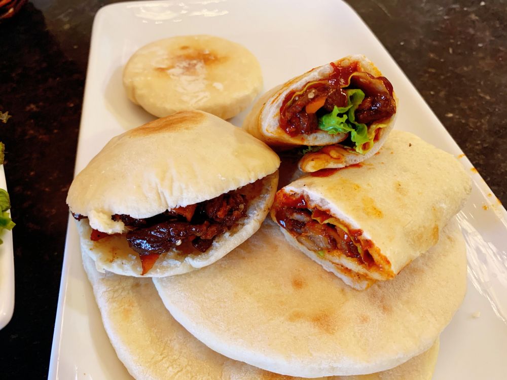 大家好,今天来做牛肉丝卷饼,一款是口袋饼可以做肉夹馍,卷饼有点像墨西哥的卷饼,发面饼的两种做法
