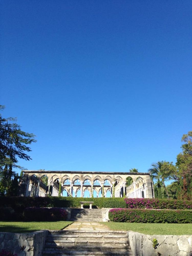 沿着海岸线,踩着细如粉末,洁白如雪的细沙走到了一处无人的海滩,壮阔的海景,如涌的碧波,碧洗的净空,一条石子路引我走进一个神秘园,法式的园林,植物被修剪整齐,有石雕,建筑配合得当。空无一人,静无一声。让我恍惚以为打破时空穿越到一个平行时空了。