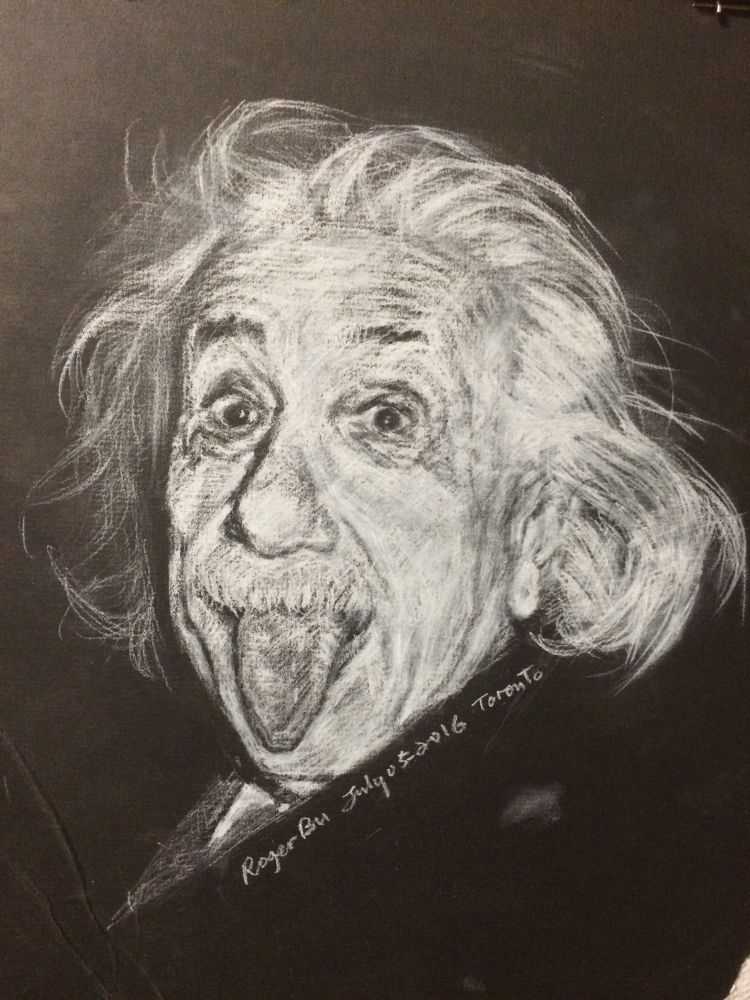 前几天画了一张白笔黑纸素描,感觉有点儿意思。今天有空,再试一次。照片还是不太理想,脸上对比不足,线条表现不好,很多地方变成了平涂。这种广告纸板太滑,层次加不上去,还是要用好一些的素描纸试试。