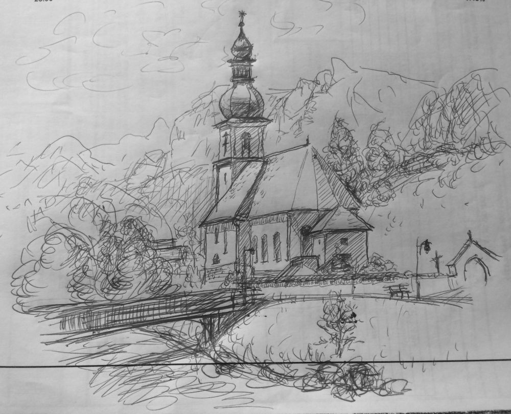 喜欢钢笔风景速写画,这里买了两只钢笔都不好用,有些怀念国内的英雄钢笔了。觉着圆珠笔携带方便,运笔十分流畅,很适合外出速写。缺陷是运笔的感觉不太好,缺乏那种质感。试着用圆珠笔画了几幅速写,选一幅贴一下,也算是一种纪录吧。