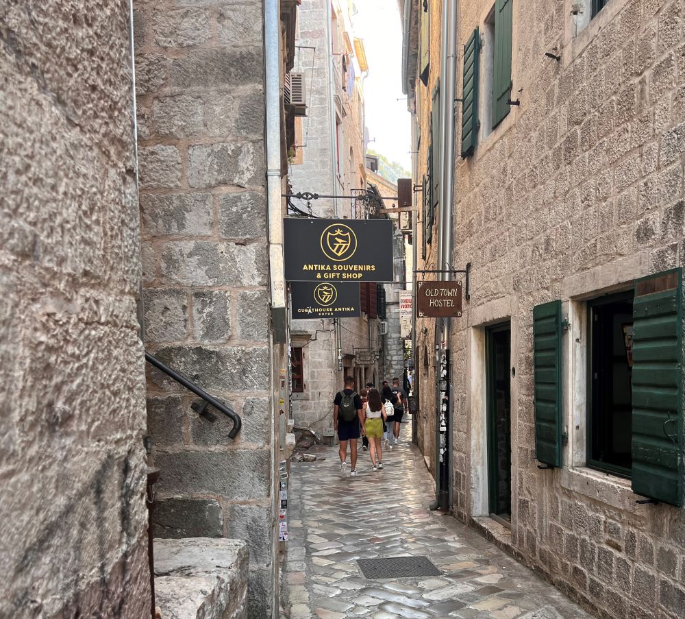 杜城到黑山的Kotor只有2小时车程。过境很容易,好像记得两国的passport controls官员在一个亭子里,中间隔了玻璃窗,出境护照盖了章就窗下递给入境(黑山)的,效率挺高:))黑山Kotor住在离老城步行15分钟的民宿,装潢一新的挺高级的房子,带厨房套间,还有给我们使用remote control的parking lot,一共才36刀。开始网上定的时候总是疑惑,不信会有那么便宜而且评论特好。可能是刚到过Dubrovnik的原因吧Kotor的老城显得比较一般。其实很值得一去的是老城后的空中城堡,时间紧了些就没去。觉得黑山生活水准好像比克罗地亚差一些,冰淇淋cone也只要1欧一个,其他吃的也不贵,这也许就是36刀能住到不错的民宿的原因吧。