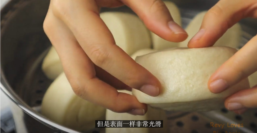 之后用刀分割好后,放到锅里发酵45分钟,然后开火,蒸12~15分钟就好了,看虽然是手工揉的,一样外表光滑不塌馅,内部绵软又有层次,非常香甜哦。